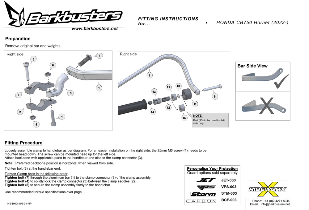 Новейшая защита рук для Honda CB 750 Hornet с 2023 года: Barkbusters BHG-109